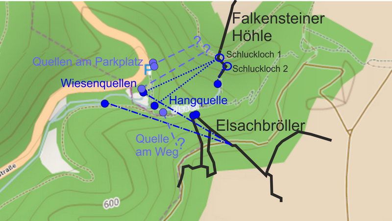 Ob die Falkensteiner Höhle in vorgeschichtlicher Zeit - wie in Rulaman beschrieben - bewohnt war, darf bezweifelt werden. Zu nass und zu kalt war und ist es in dem zeitweise vom Höhlenbach durchflossenen engen Tal. Nichts desto trotz übte die Falkensteiner Höhle eine große Anziehungskraft auf die Menschen aus. Mitte des 18. Jahrhunderts und Anfang des 19. Jahrhunderts fanden sogar Versuche statt, Silber- und Eisenerz sowie Mangan und Gold abzubauen. Sichtbar ist dies heute noch am sogenannten Goldgräberstollen vor dem ersten Siphon. Auch das künstlich angelegte Kobel-Loch (Kobalt-Loch) links oberhalb des Eingansportals ist auf diese bergmännischen Versuche zurückzuführen. Eisenerz in Form von Bohnerz aus den verwitterten Kalkschichten ist zwar vorhanden, doch lohnt der Abbau nicht. Zwar ziehen die wenigen Goldflitterchen, die man in der Elsach unterhalb der Höhle finden kann, auch heute immer wieder Hobbygoldwäscher mit ihren Pfannen an. Aber auch hier ist der ideelle Wert weit höher als der Materialwert.