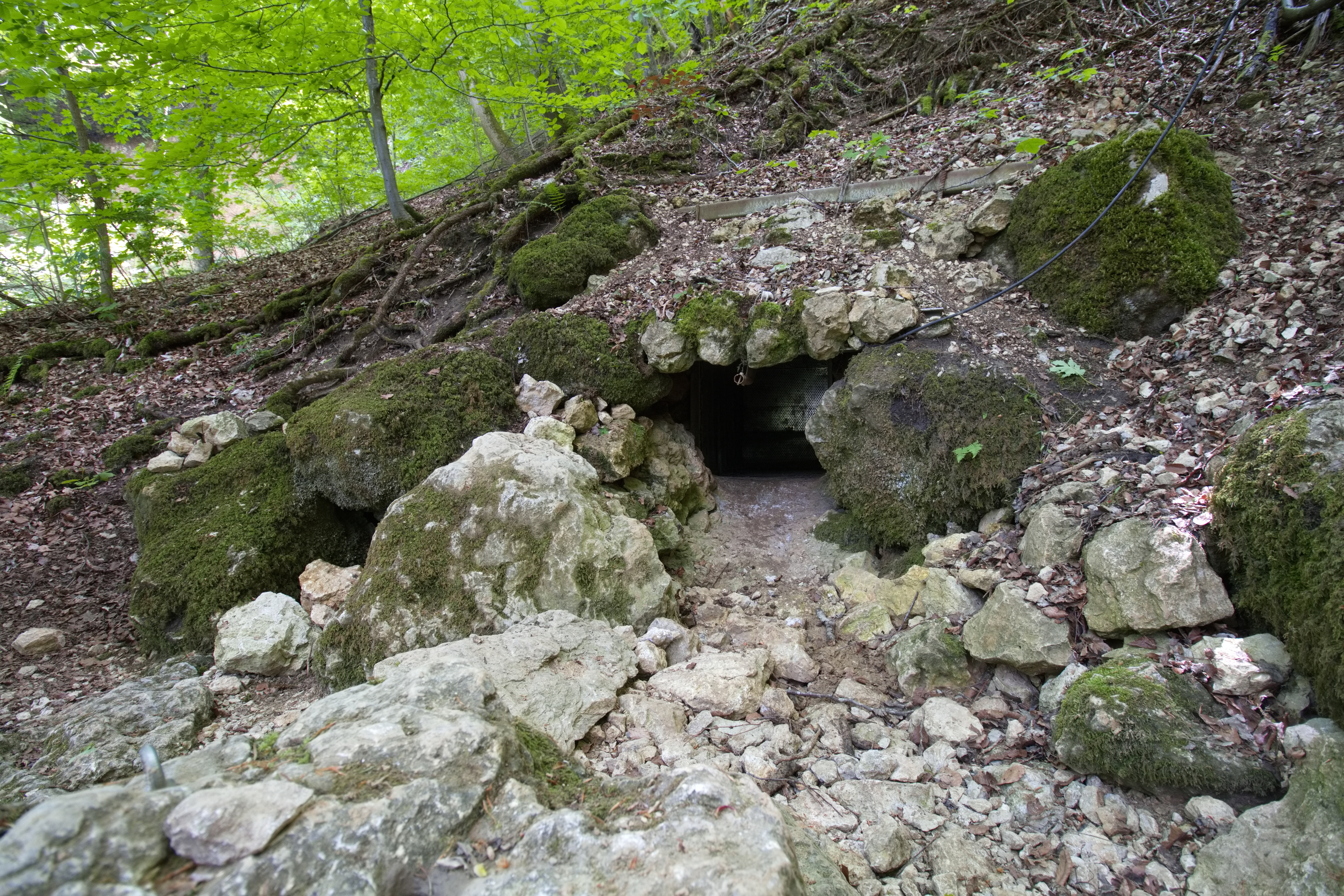 Eingang zum Grabungstollen im Hangschutt.