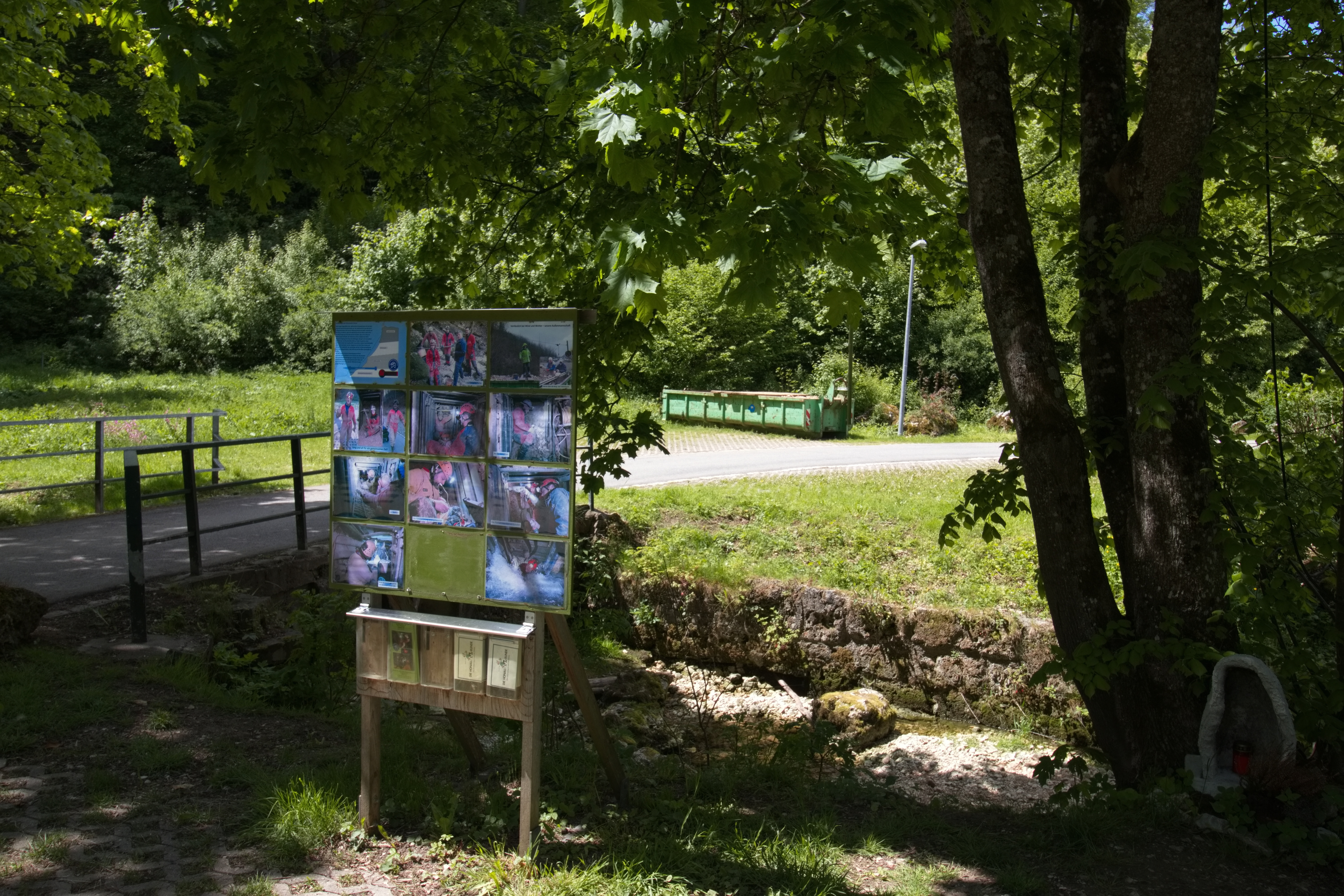 Informationsschild am Parkplatz bei der Föhnerquelle - hier kann man sich über den aktuellen Stand der Grabungen informieren.