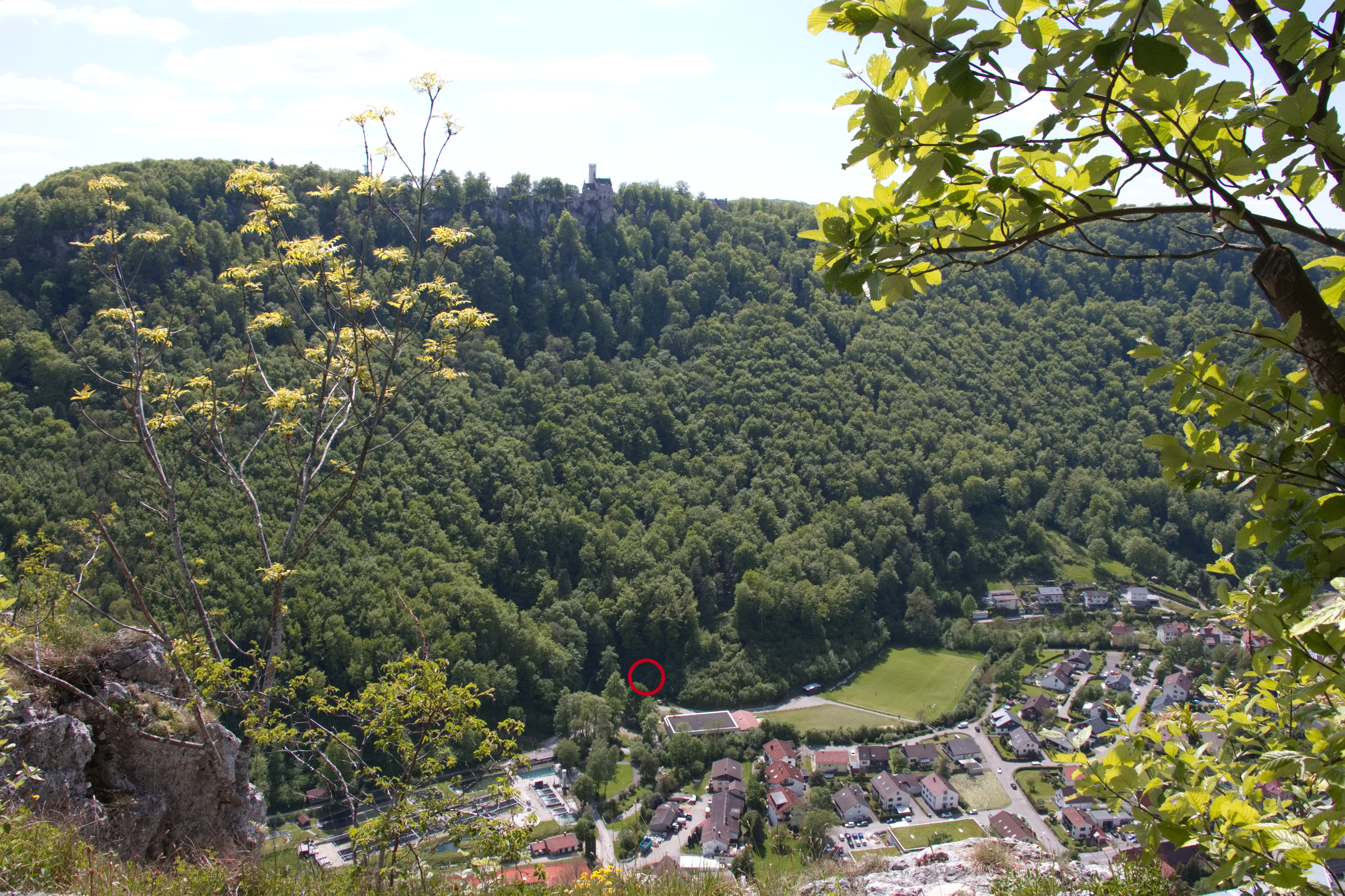 Blick von der Honauer Schanze ins Echaztal und zum Schloss Lichtenstein.